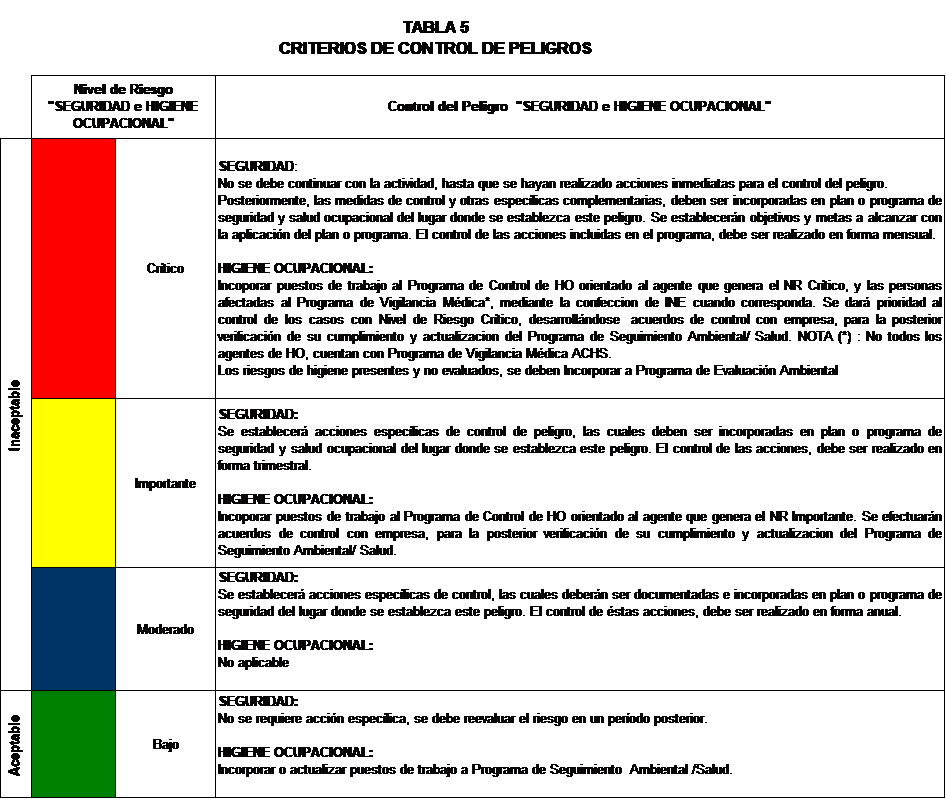 • Identificación de Peligros: La identificación de peligros se realiza según las definiciones correspondientes al punto 2 y considera los peligros asociados al área Seguridad e Higiene.